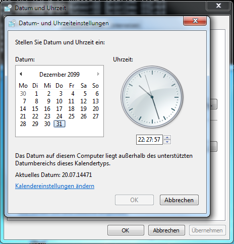 Janz lustig war dann mein PC nach dem Umzug und erneuten Einschalten, da sich dieser unbemerkt in Richtung Zukunft bewegt hatte, aber seht selbst: