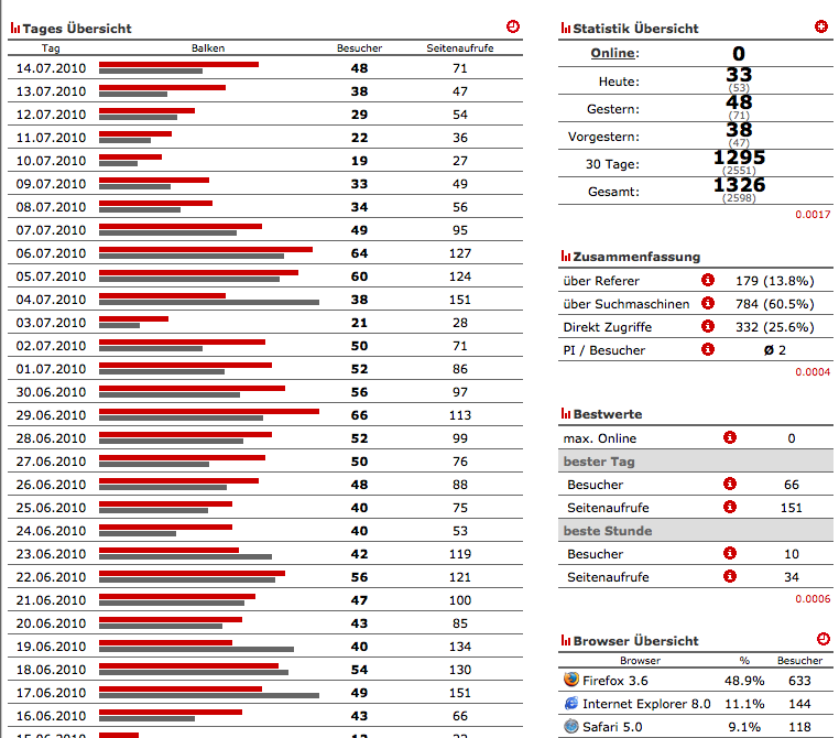 Es ist schon spannend zu sehen, welche Artikel am meisten frequentiert wurden und von wo so mancher Besucher kommt. Erschreckend aber auch manchmal, wenn man feststellt, wie viele veralte Browser-Versionen noch unterwegs sind.