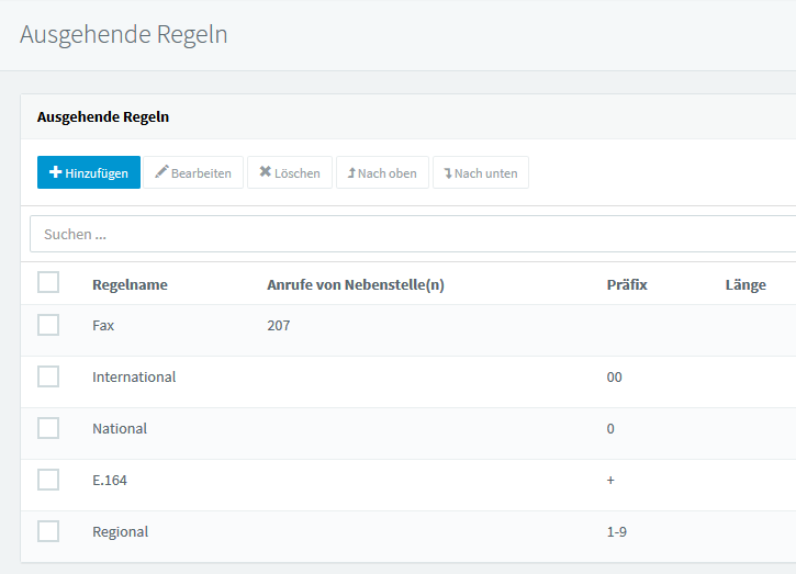 Bei unserem Fax haben wir, wie im Screenshot zu sehen, gar keine Veränderung konfiguriert. Soll heißen: Das Faxgerät bzw. PC-Fax muss die Rufnummer im richtigen Format übergeben.