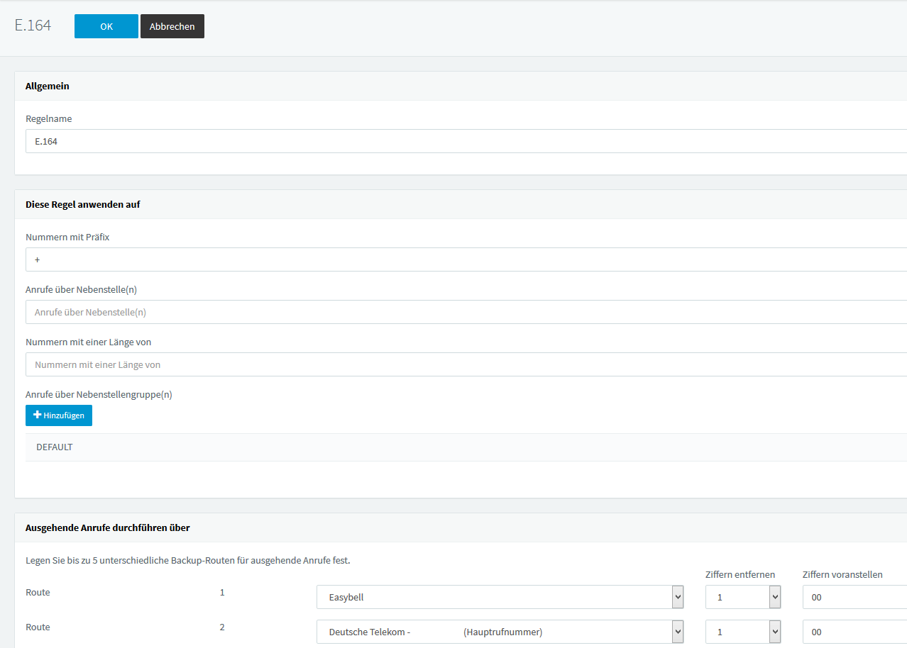 Die Regel dient hauptsächlich dazu, die richtige ausgehende Rufnummer zu verwenden.