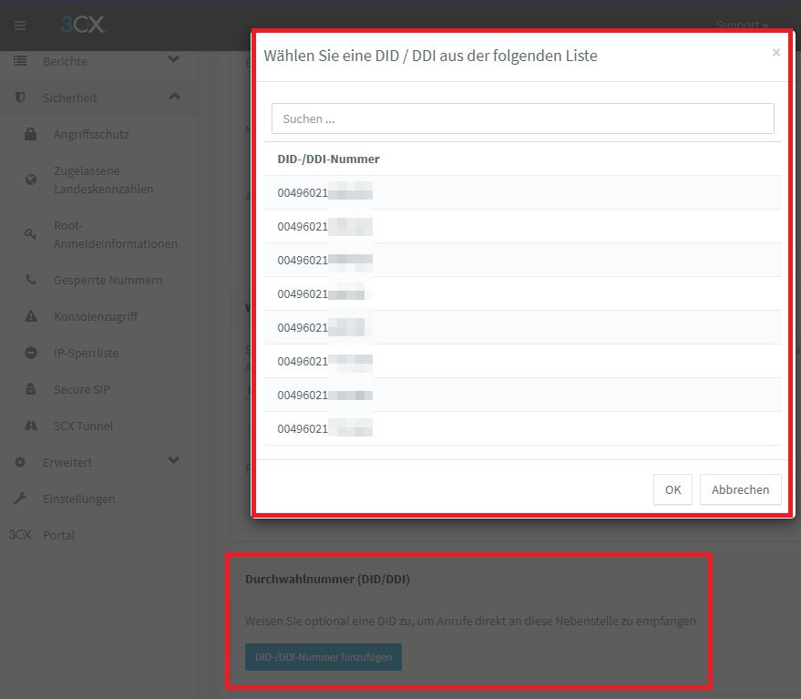 Normalerweise kann dem Benutzer in dessen Eigenschaften auf der Registerkarte “Allgemein” unter “Durchwahlnummer (DID/DID)” eine freie zur Verfügung stehende Rufnummer zugewiesen werden: