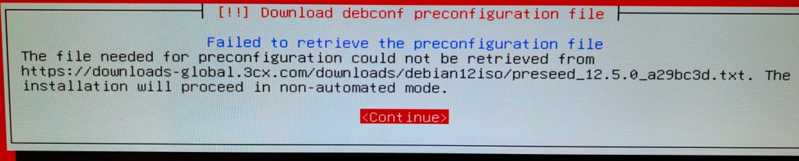 USB-Medium mit Ventoy und der aktuellen 3CX V20 ISO präpariert und das System gestartet. Nach den ersten paar Dialogen dann das: