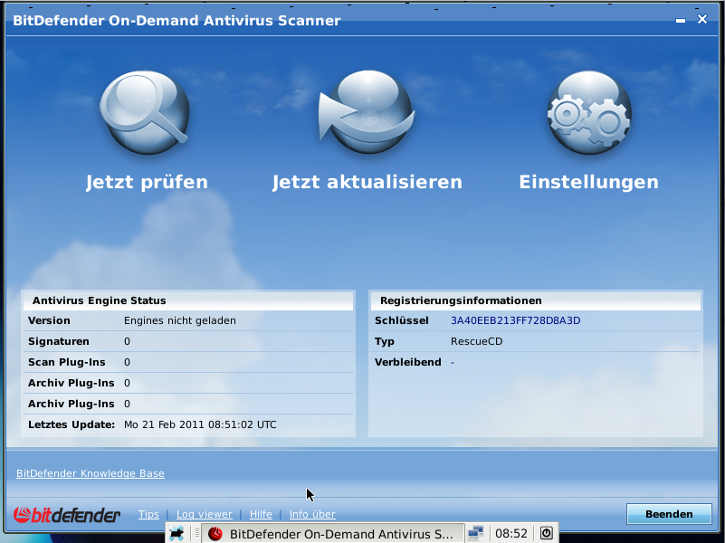 BitDefender Rescue CD – Bei der BitDefender Rescue CD bekommt man direkt beim Booten die Möglichkeit, zwischen mehreren Sprachen auszuwählen. Als Besonderheit ist TestDisk mit integriert, um verlorene Daten wiederherstellen zu können.