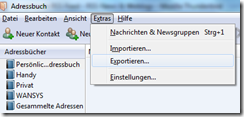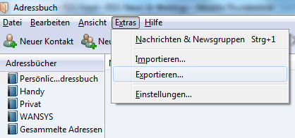 Das entsprechende Adressbuch in der linken Spalte anklicken, dann unter Extras auf Exportieren… klicken.