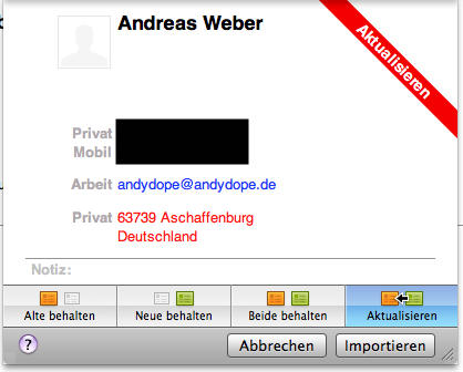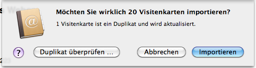 Falls es bereits vorhandene Adressen gibt und davon ist eine oder mehr doppelt, so kann man prüfen und festlegen, wie damit verfahren werden soll.