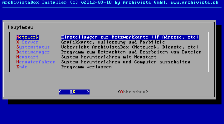 ArchivistaVM gibt es jetzt ganz neu auch ohne GUI, d.h. ohne lokale grafische Oberfläche. Das spart nochmal ein paar MB ein und so schrumpft die Größe der ISO-Datei auf 71,1 MB. Dennoch sind alle Features vorhanden und auch bei der Ersteinrichtung ändert sich nichts.