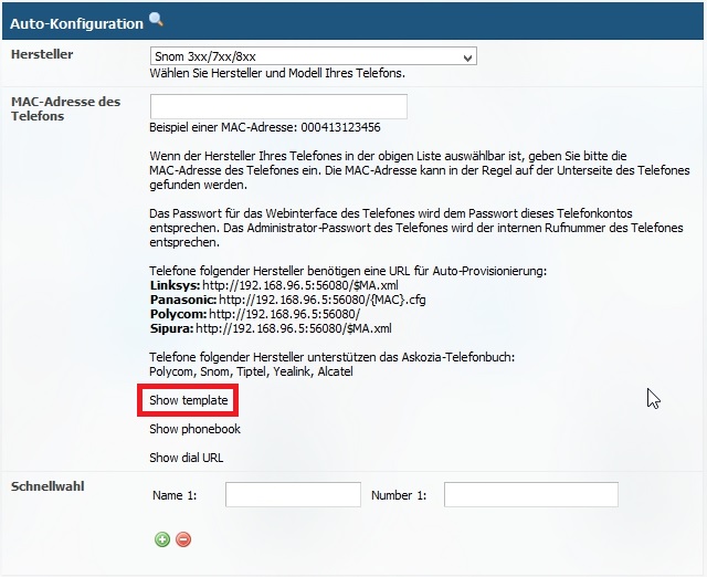 Wie das Template von Askozia aussieht, kann man sich über das Telefon-Konto im Abschnitt “Auto-Konfiguration” nach einem Druck auf die “Alt-Taste” und einem Klick auf “Show template” anzeigen lassen.