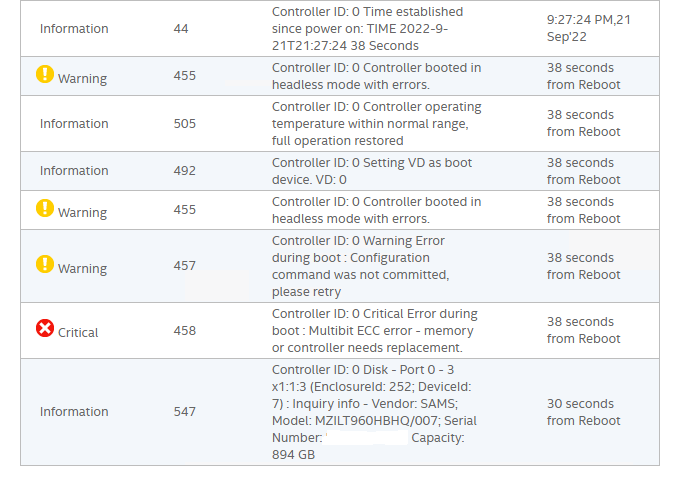 Nachdem das installierte Betriebssystem, hier ein Windows Server 2022 Standard, wieder gestartet war wurde im LSA (LSI Storage Authority) das Protokoll überprüft. Hier fand sich dann die Quelle allen Übels: