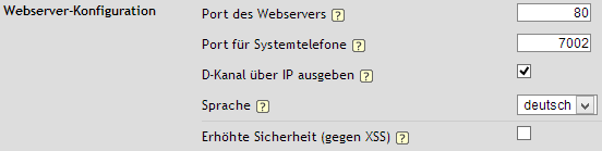 - Bei “Webserver-Konfiguration” im Bereich “Netzwerk” (ganz unten) den Haken bei “D-Kanal über IP ausgeben” setzen und die Änderung speichern.