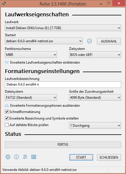 - Dieses Abbild schreibt man mit Rufus auf einen USB-Stick.