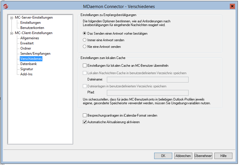 Einstellungen - MDaemon Connector - MC-Client-Einstellungen - Verschiedenes