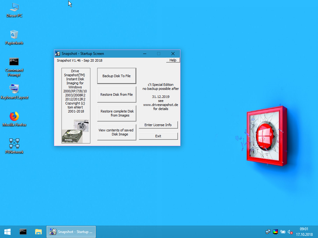 Kurz notiert: Wie die vergangenen Jahre auch ist Drive Snapshot in einer zeitlich begrenzten Version dieses Jahr ebenfalls wieder im c’t-Notfall-Windows 2019 enthalten.