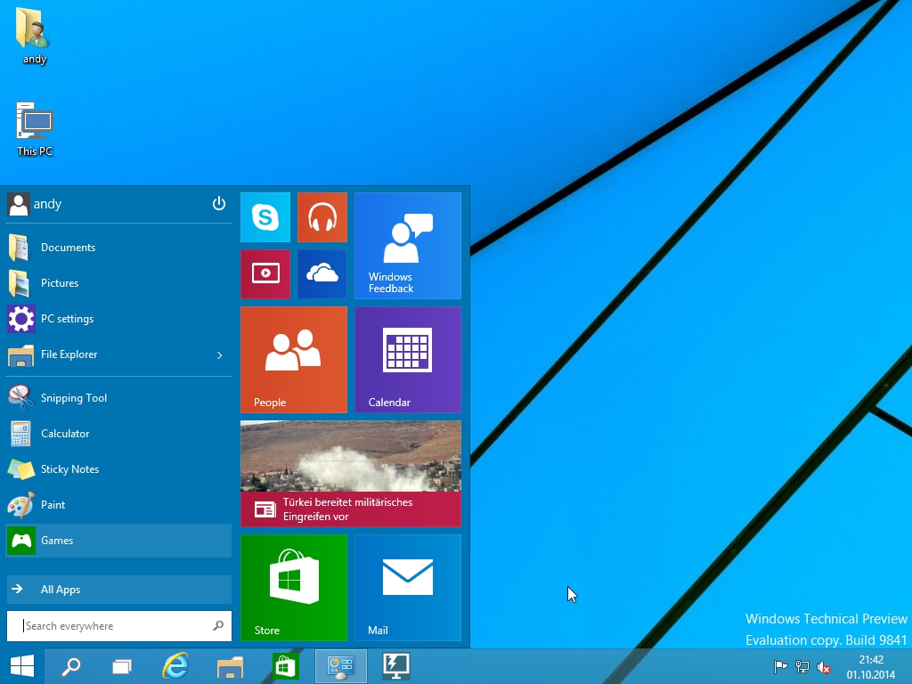 Wie viele andere so habe auch ich kurz nach Erscheinen der Windows 10 Technical Preview diese heruntergeladen und installiert. Anbei ein paar Bilder und ein erster Eindruck.