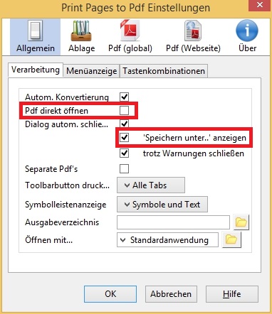 Tipp: In der Voreinstellung erzeugt das Add-on das bzw. die PDFs und möchte Diese gleich öffnen. Mir persönlich gefällt es allerdings besser, wenn man die Dateien erstmal an gewünschter Stelle speichern kann. Das Verhalten lässt sich in den Einstellungen regeln: