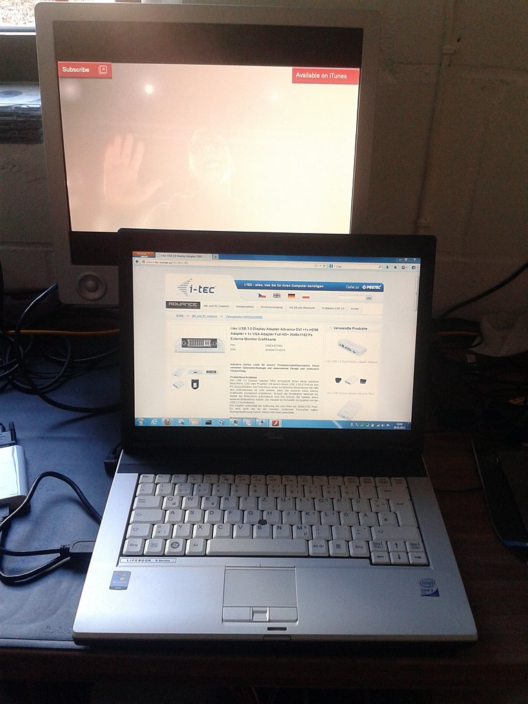 Bei einem Kunden-Notebook zeigten sich mit mit der integrierten Grafikkarte bzw. an deren VGA-Anschluss in Verbindung mit einem Beamer Farbfehler. Da die Grafikkarte nicht getauscht werden kann, da verlötet und der Kunde nur deswegen kein neues Notebook kaufen wollte, war der Gedanke naheliegend, eine USB-Grafikkarte zu verwenden.