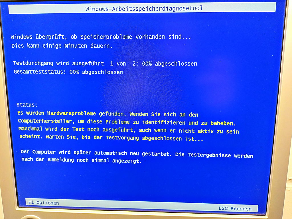 Leider ist das Windows-Bordmittel nicht sonderlich aussagekräftig. Hinzu kam das beim Test der PC hängen bzw. stehen blieb, folglich gab es keine Zusammenfassung.