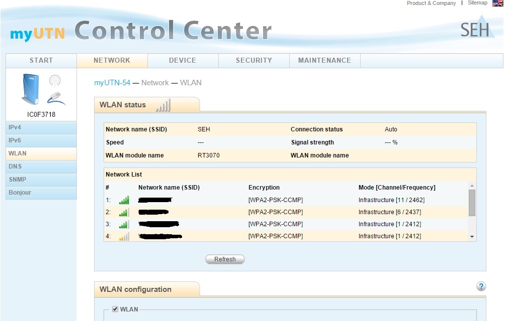 Da die Software im wesentlichen identisch zum myUTN-50a ist, sei auf den entsprechenden vorigen Blog-Beitrag verwiesen. Der Hauptunterschied liegt in der Möglichkeit, USB-Geräte via WLAN anzubinden. Dazu findet sich im Web-Interface des Deviceservers die entsprechende Konfigurationsmöglichkeit zur Anbindung ans Funknetz: