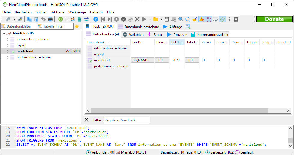 Mit HeidiSQL von Ansgar Becker steht ein einfach zu bedienendes und zugleich mächtiges Werkzeug für die Verwaltung der gängigen Datenbanksysteme MariaDB, MySQL, MS SQL, PostgreSQL & SQLite zur Verfügung.