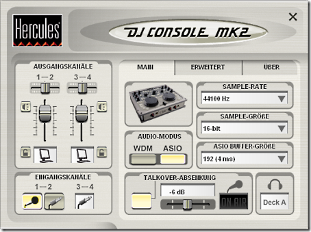 Ich habe mir mal eine Hercules DJ Console Mk2 zum Testen organisiert.
