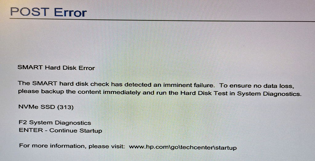HP Notebook and Desktop PCs – SMART Error 313 is Displayed During Startup