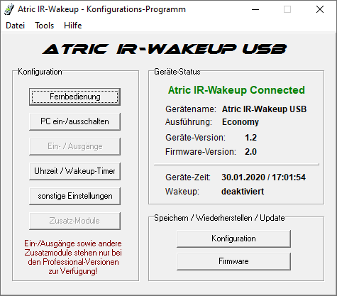 IR-WakeupUSB kann noch mehr. Stellt man die Uhrzeit im Modul ein lassen sich Einschaltzeiten festlegen, d.h. der Computer startet dann immer zur gewünchten Zeit.