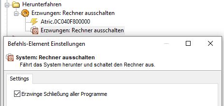 Erste Tests haben gezeigt, das zwar das Herunterfahren mit den Atric-eigenen Mitteln funktionieren kann, aber mitunter am DVBViewer hängen bleibt. Als besserer Weg hat sich bis jetzt herausgestellt, das Herunterfahren mittels EventGhost zu erzwingen: