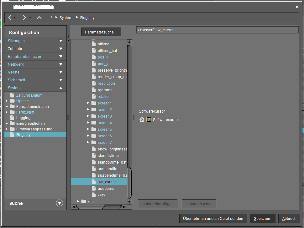 Konfiguration - System - Registry - x - xserver0 - sw_cursor - "Softwarecursor" aktivieren