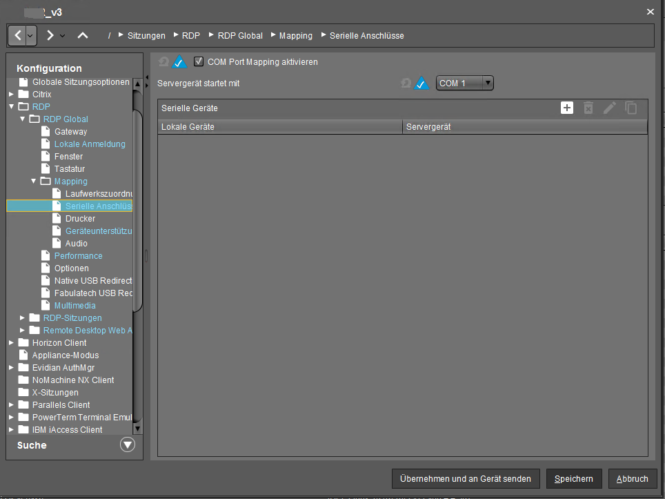 - Zu “Sitzungen – RDP – RDP Global – Mapping – Serielle Anschlüsse” wechseln.