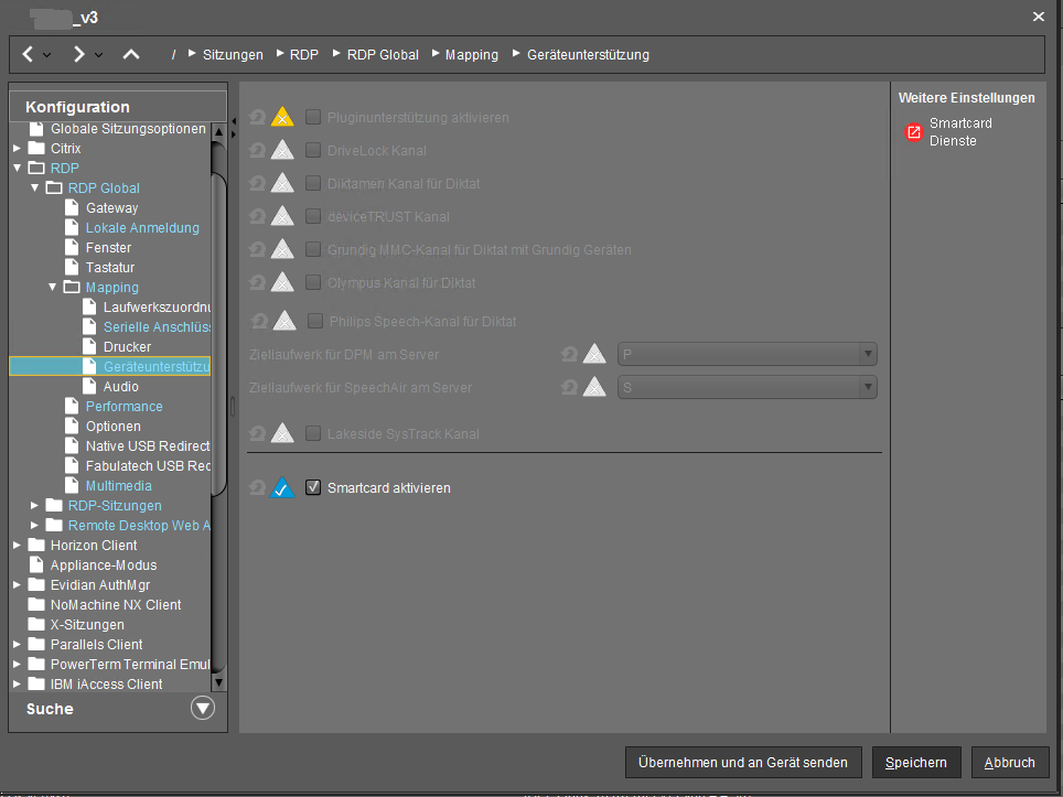 Für die Sitzung(en) muss die Smartcard-Anbindung konfiguriert sein: