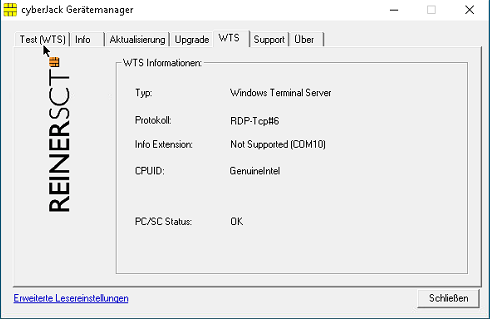 Verbindet man sich nun erkennt der cyberJack-Gerätemanager den Kartenleser: