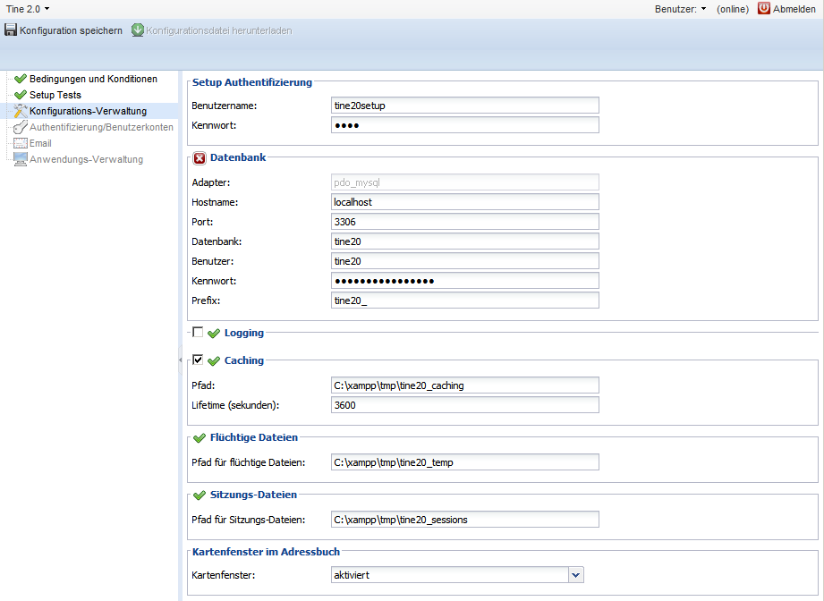 Das rote Kreuz erscheint immer, solange keine gültige Daten eingetragen wurden. Sobald diese “drin stehen” und die Konfiguration gespeichert wurde, geht’s weiter.