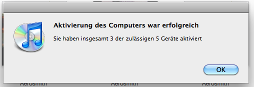 Falls DRM-geschützte Musik in der Vergangenheit bei iTunes gekauft wurde muss noch der iTunes-Account hinzugefügt werden und der Computer für die Wiedergabe aktiviert werden.
