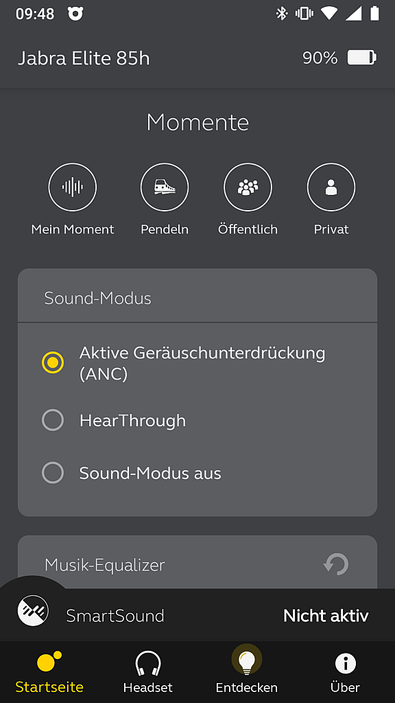 Ein anderes Phänomen das ich habe ist das plötzliche Abschalten von ANC, dies scheint allerdings nur in Verbindung mit meinem Android-Smartphone bei aktivem SmartSound in der Jabra-App zu passieren.