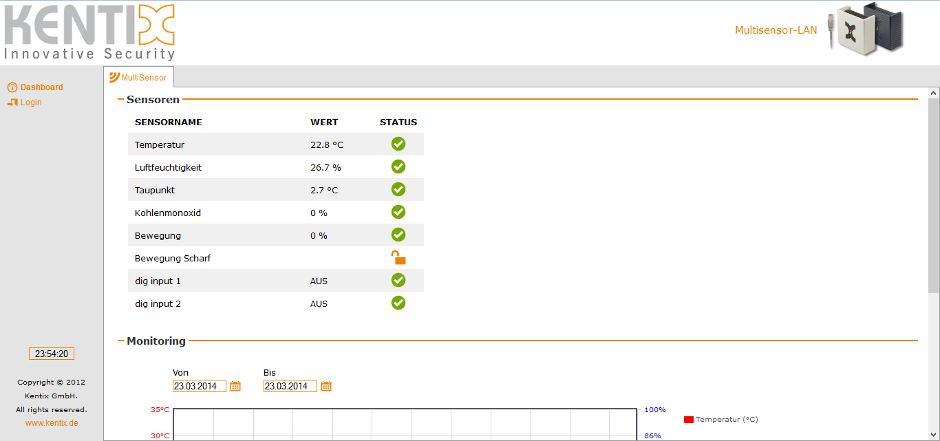 Mit dem Kentix MultiSensor-LAN steht eine kompakte Lösung für die Überwachung von Umgebungsparametern wie z.B. Temperatur oder Luftfeuchtigkeit zur Verfügung. Der große Vortel besteht darin, das es ein autarkes host-unabhängiges System ist, das schnell und einfach in Betrieb genommen und eingerichtet ist. Der Hersteller hat darüber hinaus noch mehr im Angebot, dies wird aber nicht in diesem Beitrag beleuchtet.