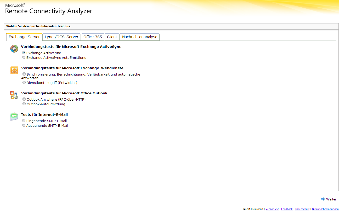 Microsoft Remote Connectivity Analyzer (Mittlerweile schwer bis gar nicht zu erreichen)