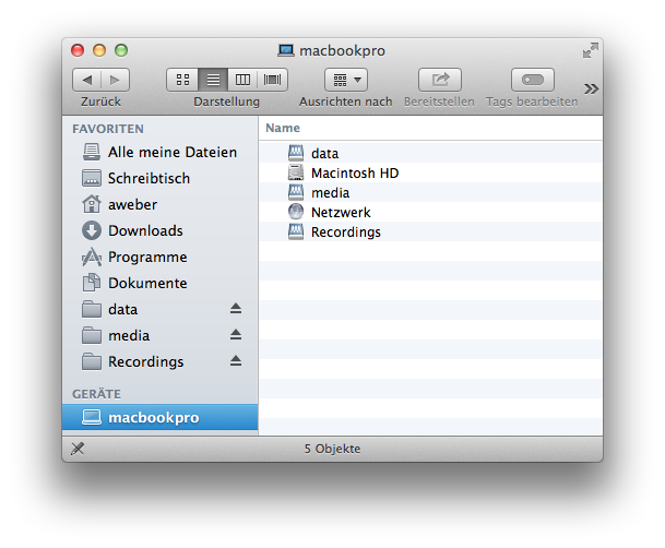 Es gibt einige Möglichkeiten, Freigaben unter Mac OS X einzuhängen. Eine recht einfache Option ohne große Terminaleingaben, Skripte oder die Verwendung von Anmeldeobjekten besteht in der Verwendung der Favoriten im Finder.
