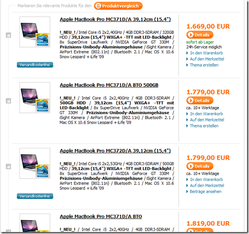 Selbst wenn man beim Prozessor in der Suche egal einstellt und den Rest (Festplatte, Arbeitsspeicher, etc.) gleich lässt, kommt man nur bei Apple raus.