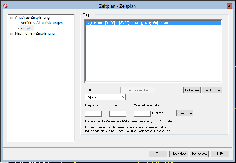 Ein manuelles Aktualisieren, die Ergebnisse der Aktualisierung sowie den Zeitplan kann man über die entsprechend beschrifteten Schalflächen einsehen. Funktioniert die Aktualisierung trotz eines vorhandenen Zeitplans nicht, dann diesen Löschen und neu erstellen: