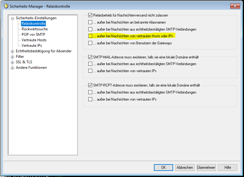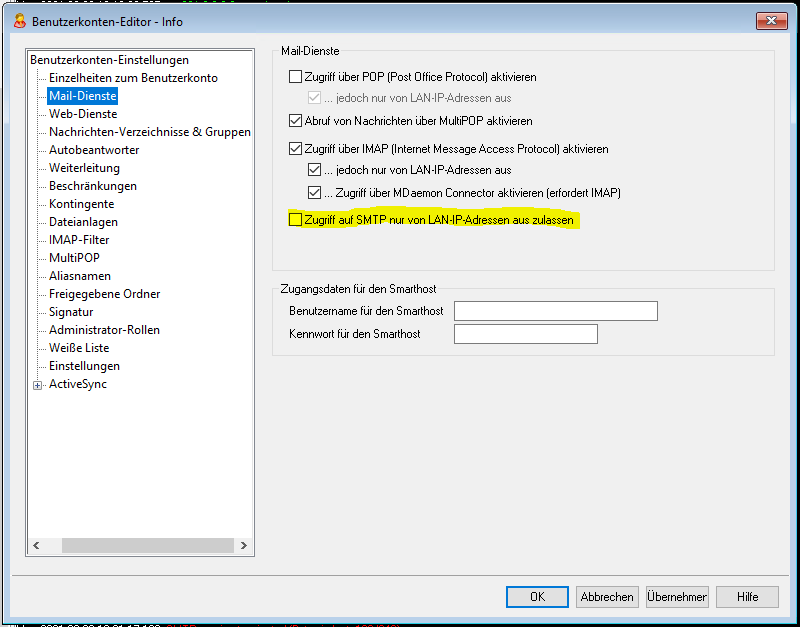 Mail-Dienste - Zugriff auf SMTP nur von LAN-IP-Adressen aus zulassen