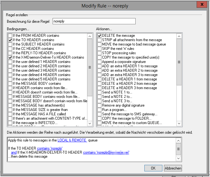Als Wert von “X-MDaemon-Deliver-To-HEADER” trägt man “noreply@domain.tld”, gemeint ist die eigene E-Mail-Domäne, ein.