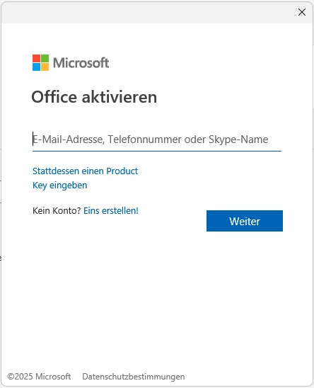 Möchte man MS Office (z.B. 2024) in einer RDP- oder über eine anderweitige Fernwartungs-Sitzung aktivieren, geht es nach der Eingabe des Product Keys unter Umständen nicht weiter. Sobald die Daten für das Microsoft Konto eingetragen werden sollen ist keine Eingabe möglich. Der Fehlerzustand ist bereits daran zu erkennen, wenn kein Cursor angezeigt wird. Es spielt offenbar keine Rolle ob man auf der Konsolensitzung ist oder via RDP, VNC, pcvisit, MeshCentral, etc. verbunden ist.