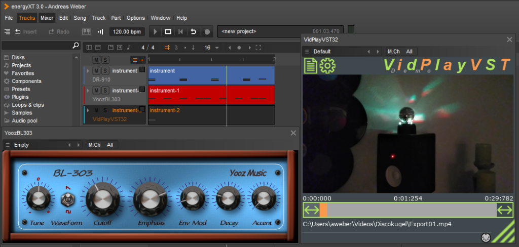 Sofern die DAW VST(i) unterstützt, besteht mit dem Plugin VidPlayVST die Möglichkeit, ein Video wiederzugeben.