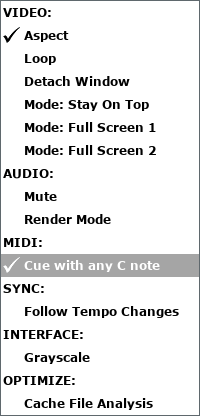 Damit das Starten des Videos in energyXT klappt, muss “Cue with any C note” in VidPlayVST aktiviert werden.