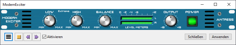 I.d.R. finde ich es besser wenn man (Freeware-)Plugins einfach in den jeweiligen Ordner kopieren kann. Zum einen geht’s schneller beim Rechnerwechsel, zum anderen ist’s immer gut, wenn nicht groß etwas installiert, registriert, freigeschaltet etc. werden muss. Lange Rede, kurzer Sinn: Eine Alternative sollte her, also kurz danach gesucht und auf den Modern Exciter von Antress gestoßen. Leider funktioniert der Download auf der Anbieter-Seite nicht, es gibt allerdings andere Stellen wie hier: