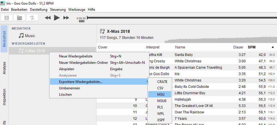 Für die diesjährige Weihnachtsplayliste(n) wollte ich die Musik in aufsteigender Geschwindigkeit wiedergeben. Mit einem DJ-Programm, der Sortierung nach BPM und Automix ist das kein Thema. Wenn man Playlisten z.B. für den VLC media player oder andere vorbereiten möchte, hilft einem das unter Umständen wenig.