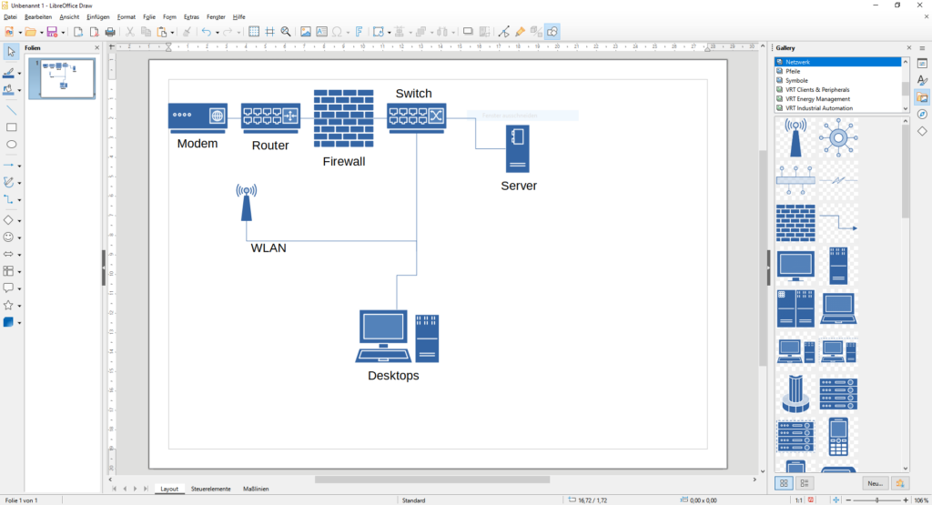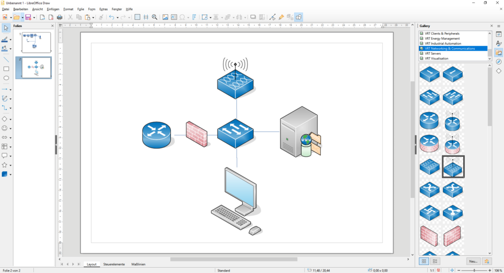 LibreOffice selbst liefert eine eigene Galerie mit Netzwerk-Symbolen mit: