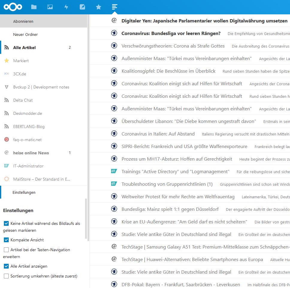 Nach dem Export der Newsfeed aus Thunderbird als OPML-Datei und dem anschließenden Import in Nextcloud News sah’s zunächst gut aus. Alle Feeds waren da, allerdings jeder in einem eigenen Unterordner, das mag allerdings nur Kosmetik sein. Jedenfalls gab’s die ersten Überraschungen beim Verschieben der Feeds aus den jeweiligen Unterordnern, denn manche verschwanden daraufhin. Versuchte man diese manuell wieder neu anzulegen, erhielt man die Meldung, das dies nicht möglich sei, da der Feed bereits vorhanden wäre. Direkt sichtbar war das allerdings nicht. Woran es womöglich gehangen hat gleich mehr.