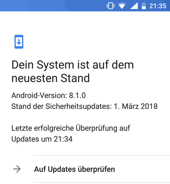 Im Moment prüfe ich täglich, ob es ein Update für Android und die installierten Apps gibt.