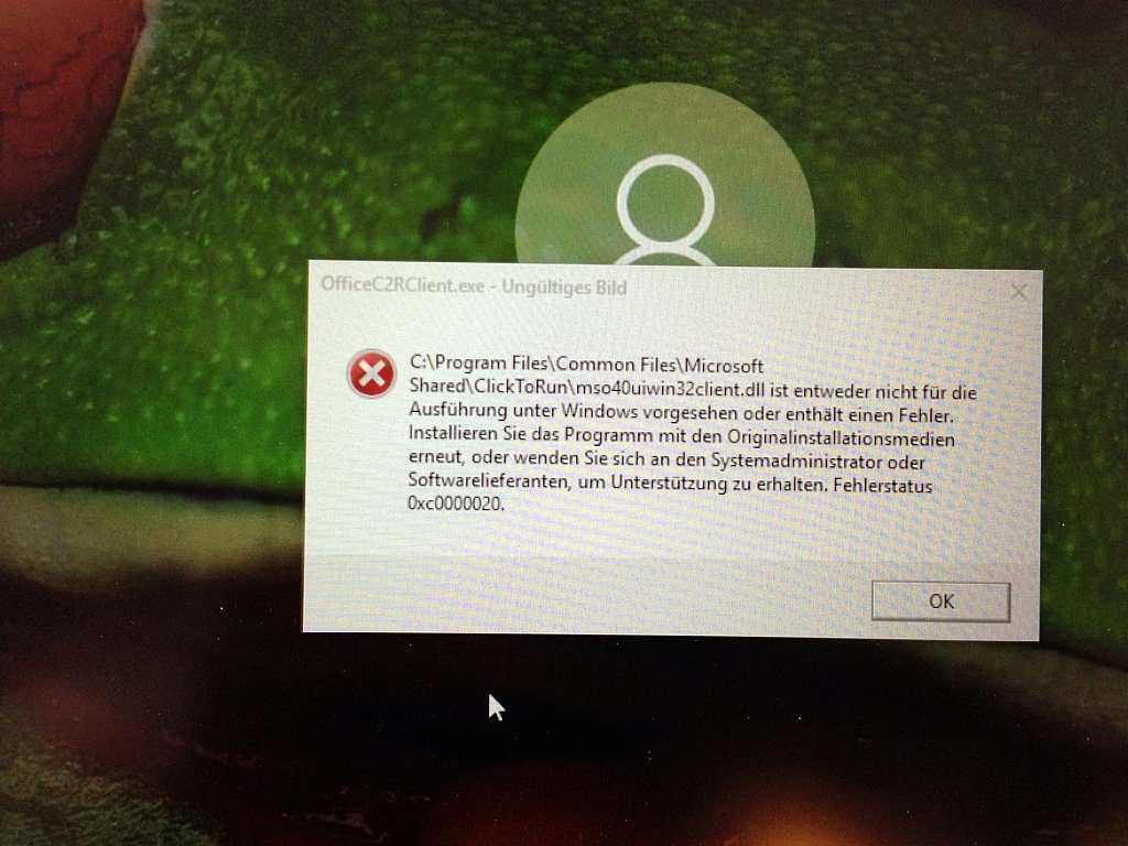 Ganz gleich welchen Office-Bestandteil (z.B. Word, Excel, Outlook) man versucht zu starten, man erhält folgende Fehlermeldung in Endlosschleife: