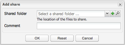- Um Daten freizugeben, muss man zur Registerkarte “Shares” wechseln und auf den Button “Add” klicken. In dem daraufhin erscheinenden Dialog wählt man einen vorhandenen “Shared Folder” aus oder erstellt einen Neuen.